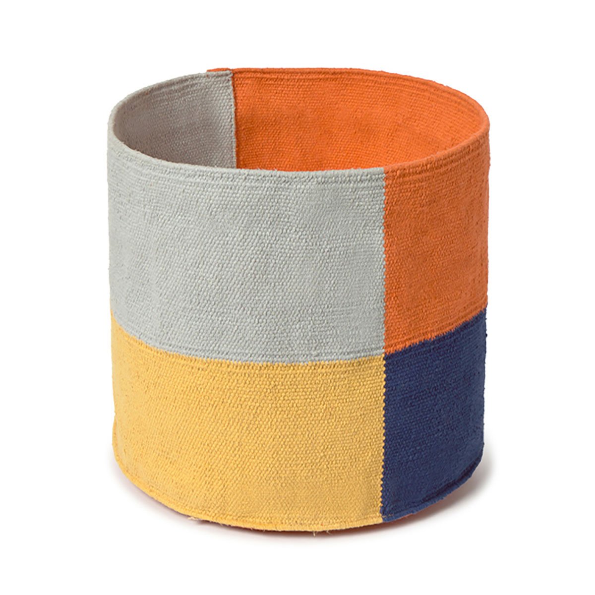 Cesto em tecelagem kilim, feito à mão em algodão natural (30x30cm). Inspirado na estética Bauhaus, une design atemporal, textura e praticidade, sendo ideal para guardar brinquedos e totalmente lavável em máquina.