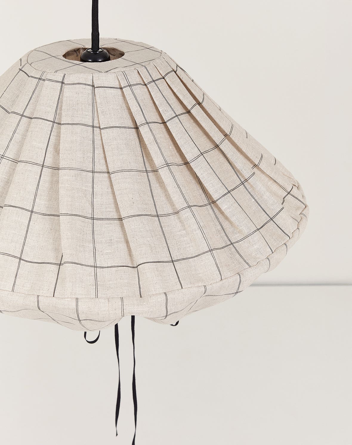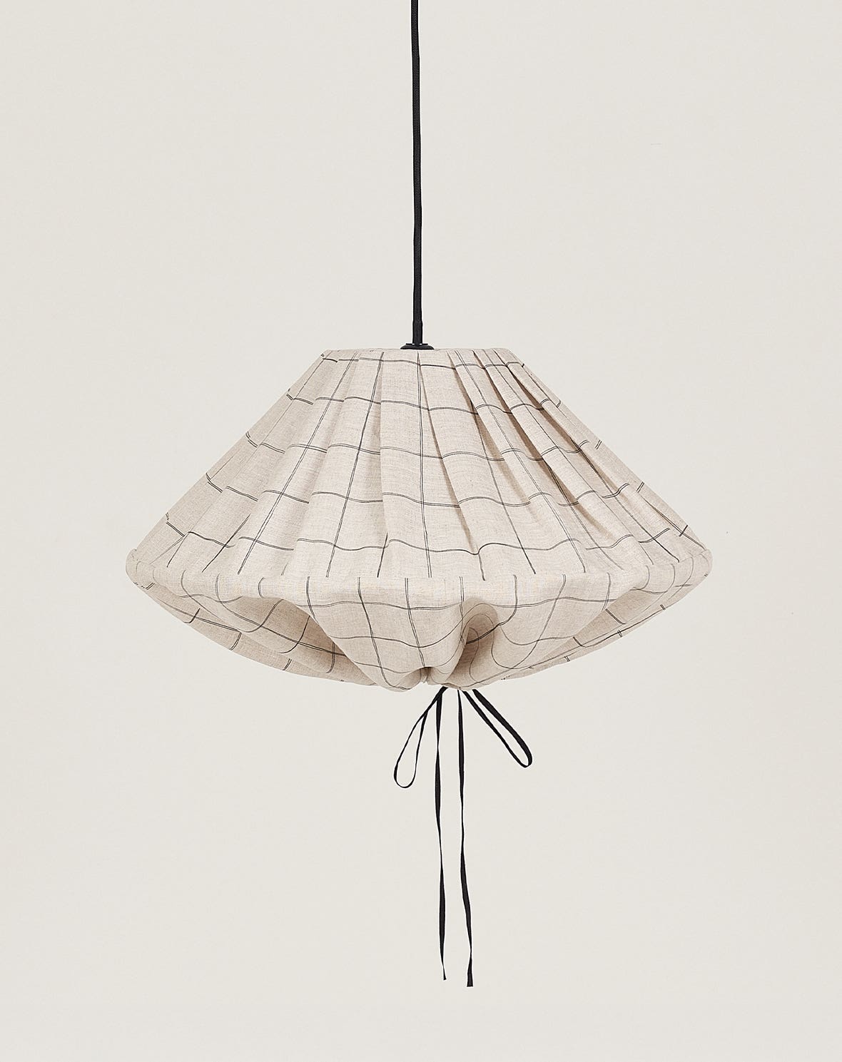 Estética Japonesa e Textura Premium em Linho Francês O lustre Yumi combina a elegância do linho francês com uma estética de inspiração japonesa, finalizada por um delicado laço preto na base. Esta peça atemporal e sóbria utiliza materiais nobres para criar um ambiente de tranquilidade e caráter. Seus estampados vibrantes em linho de fibras longas garantem resistência e uma textura única, tornando-o um ponto focal sofisticado para quartos ou salas auxiliares.