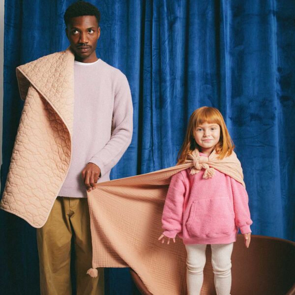 Envolva seu bebê em conforto com a muselina Wabi-Sabi dupla face Powder Pink de algodão orgânico. Leve, macia e respirável, perfeita para todas as estações.