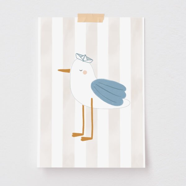 O pôster Gaivota é impresso em papel de alta qualidade, traz o desenho de uma gaivota super estilosa em aquarela e é perfeito para criar composições ou destacar um cantinho especial.