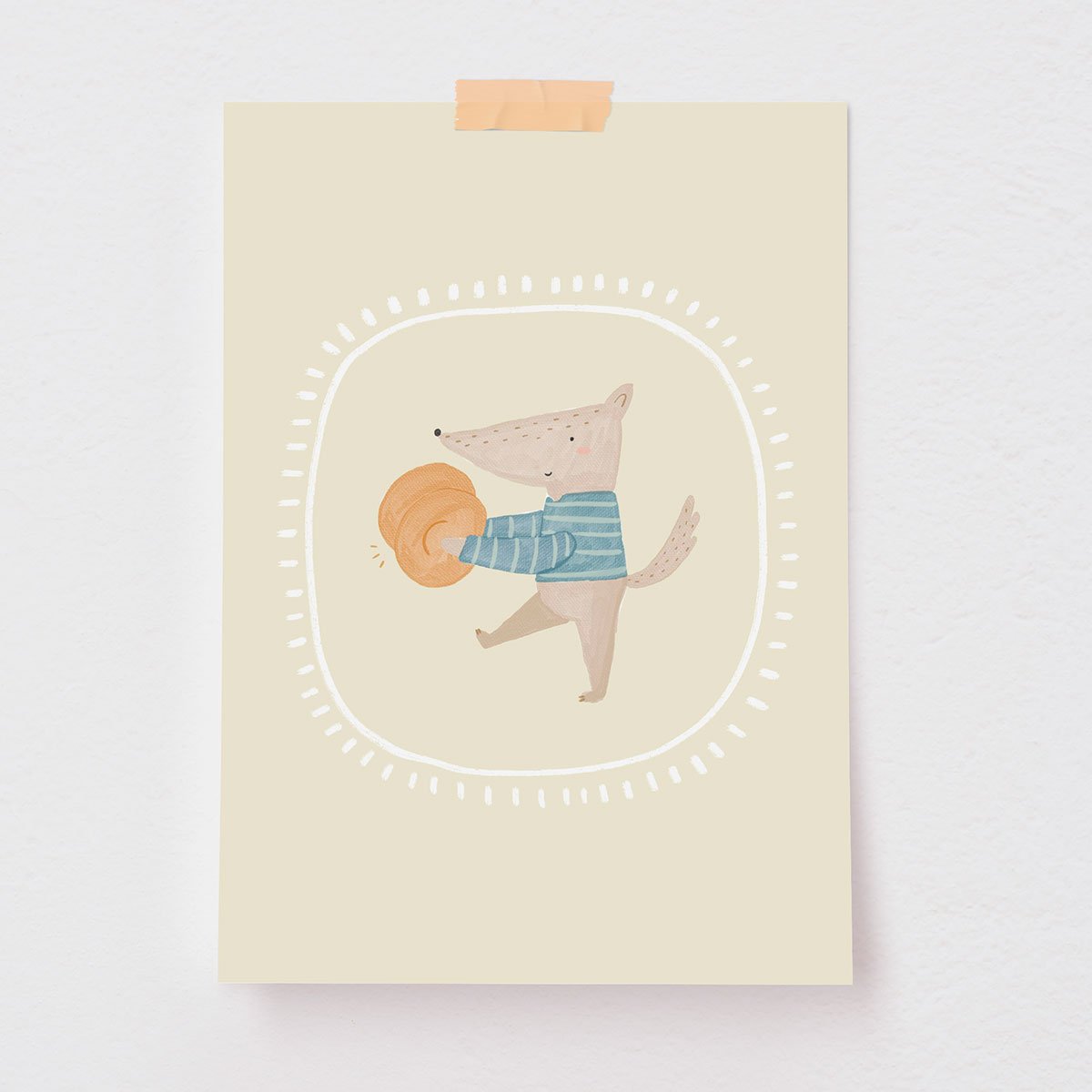 A Orquestra dos Bichos toma o palco da noite. O poster Lobo Musical é um charmoso Lobo que, com seus pratos, traz emoção à noite.