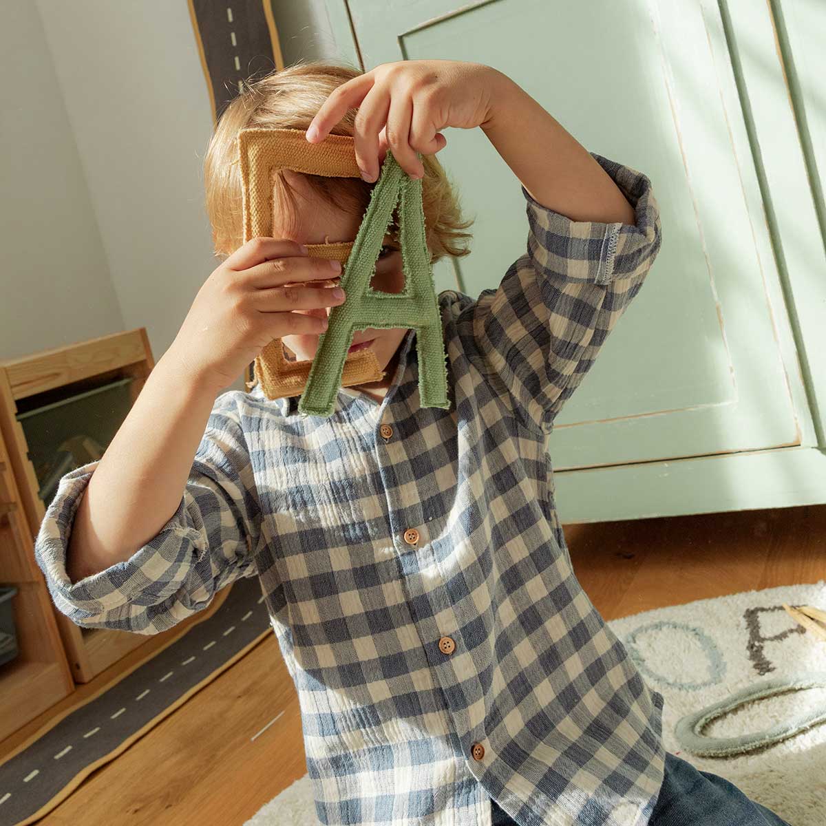 Como diferencial, as vogais vêm em formato de mini almofadas removíveis, permitindo que as crianças brinquem, aprendam e interajam com o alfabeto. Acompanha uma bolsinha de algodão com as letras soltas para facilitar o armazenamento.