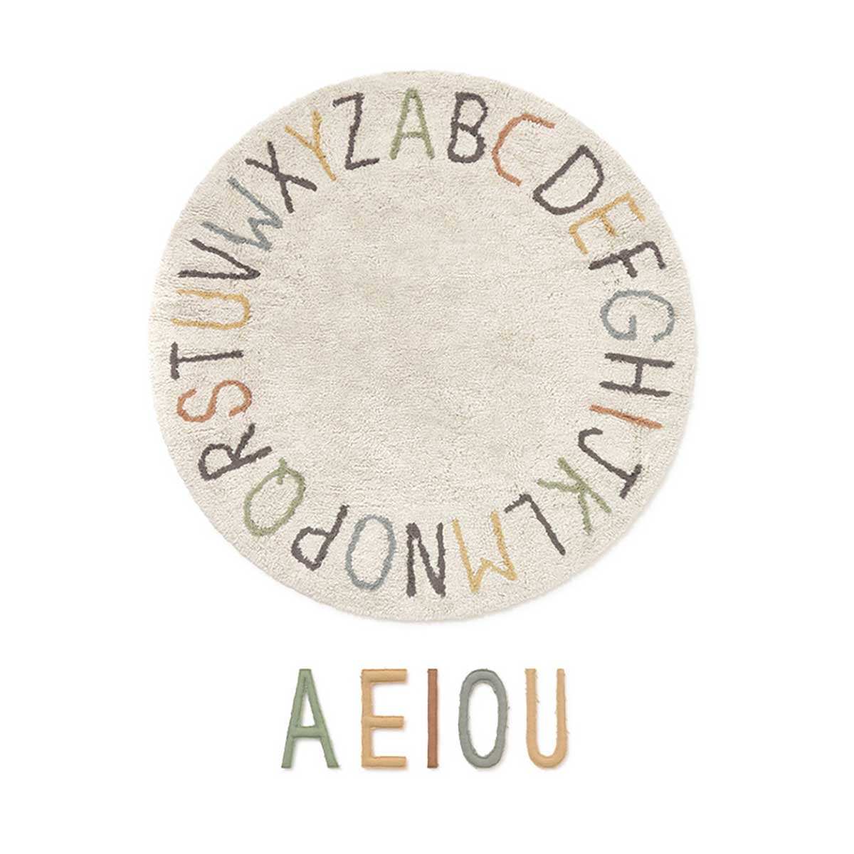 O best seller ABC agora na versão letras coloridas. O Tapete Lavável ABC Colorido é uma versão menor (120 cm) ideal para quartos infantis e brinquedotecas. Com base em tom natural e letras do alfabeto bordadas em cores vibrantes, traz um visual moderno e lúdico para o ambiente.