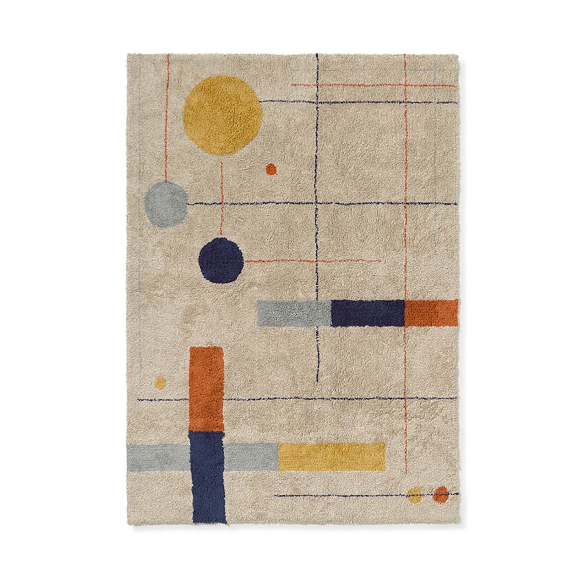 Inspirado na Bauhaus, este tapete lavável adiciona toques lúdicos de cor à sua casa. Perfeito para as aventuras das crianças ou para adicionar um toque divertido a outros espaços